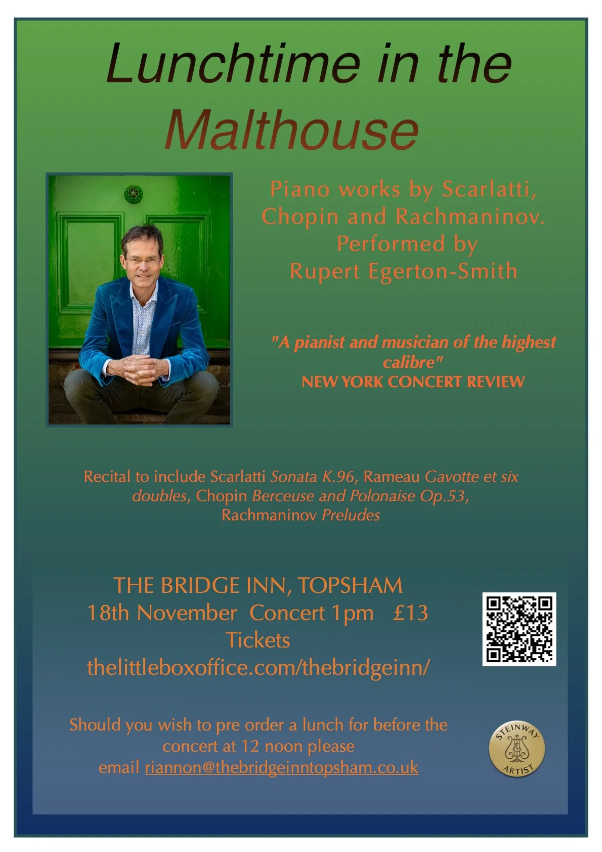 Rupert Egerton-Smith plays In Harmony, a lunchtime recital of works by composers including Scarlatti, Chopin & Rachmaninov.